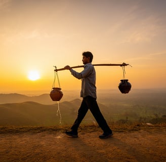 Cada día, un hombre subía la colina con dos vasijas colgando de un palo. Una era perfecta; la otra tenía una grieta por la que el agua se escapaba lentamente. La vasija agrietada vivía avergonzada, sintiéndose menos útil.